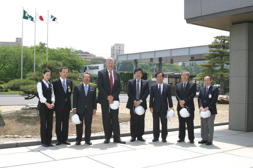 アレクサンダー オルブリッヒ ドイツ連邦共和国総領事と赤松翻訳官はさぬき市志度にある、(株)タダノ志度工場を訪問されました。武部会長、向井副会長が同行しました。工場では協会顧問でもある多田野榮特別顧問により、工場の案内を受けました。工場は大震災の影響で部品の供給がなくフル稼働ではありませんでしたが、それでも巨大なクレーンが完成していく過程がよく理解できました。とにかく大きさに圧倒されました。見学後の懇談でオルブリッヒ総領事の故郷が(株)タダノの子会社であるファウン社の所在地に近いことから、何度もドイツへ通いファウン社の買収を陣頭指揮した多田野様と話が弾みました。