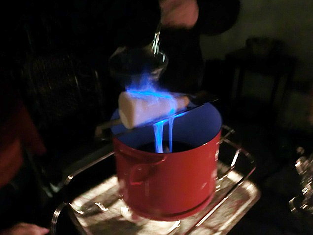 一般家庭でのクリスマスの伝統的な過ごし方にFeuerzangenbowleという行事があります。私も独日協会ボンの役員をされている小林さんのお宅に招待していただいた時、Feuerzangenbowleを体験することができました。これはレモンやオレンジを入れたワインの中にラム酒を染み込ませた砂糖の塊を溶かし込んでいく過程を楽しむものです。ワインと柑橘のいい香りが漂い、ラム酒についた青い炎も綺麗で、おいしいワインと一緒にとてもロマンチックな雰囲気を体験することができました。