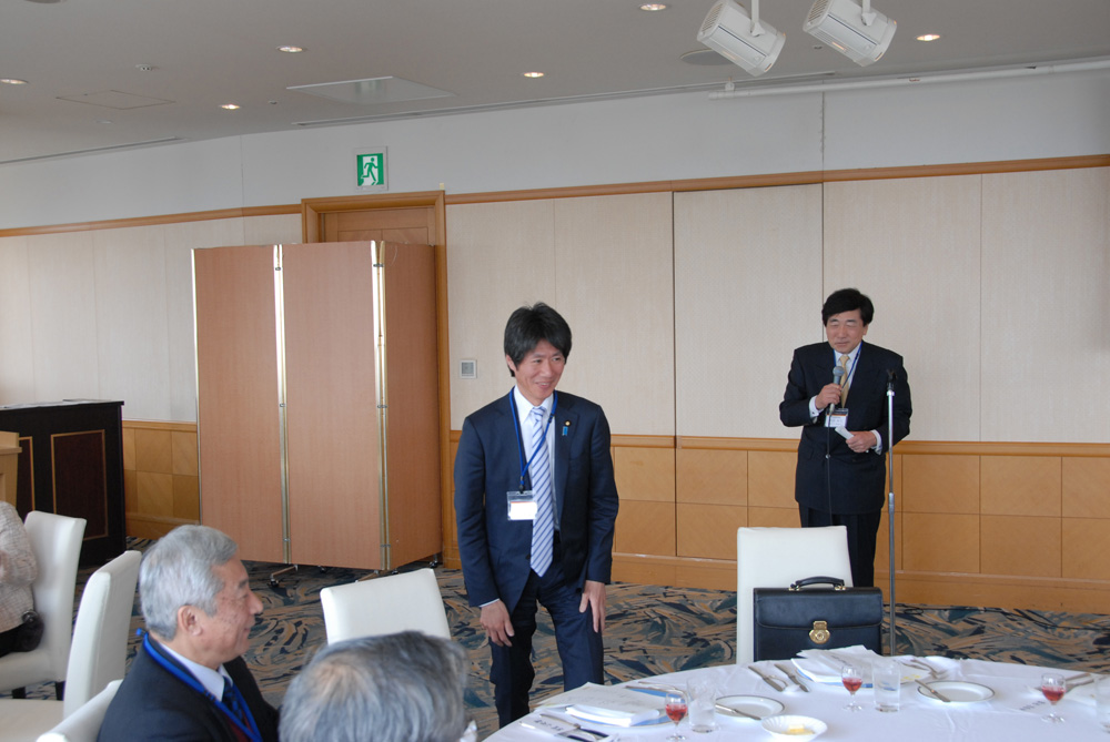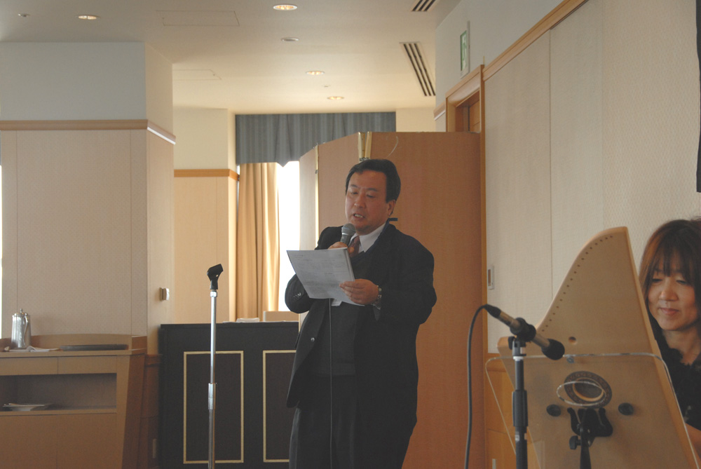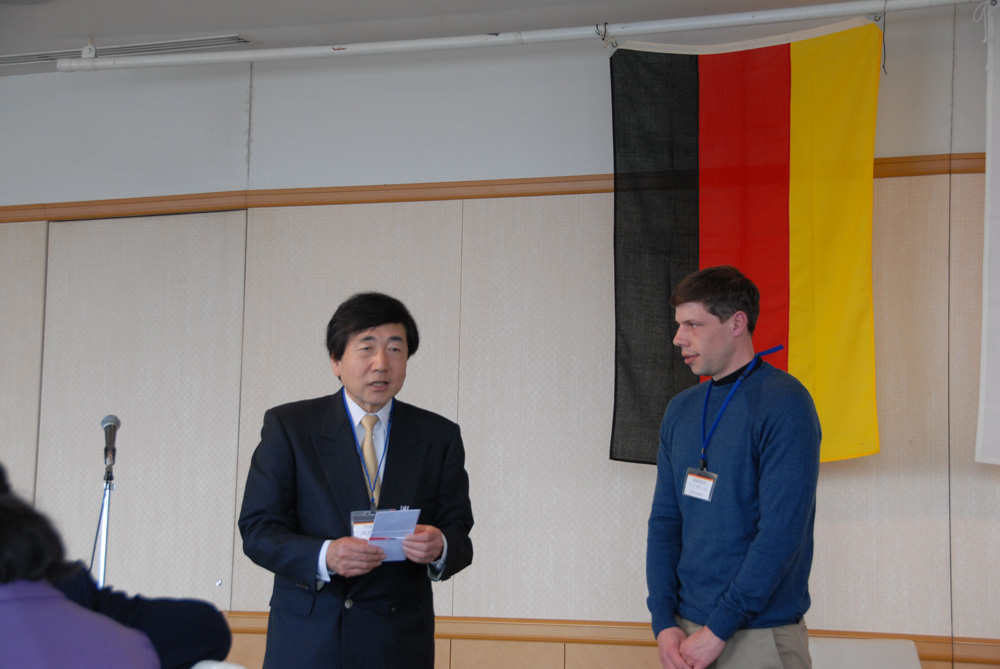 向井副会長の開会の辞、武部会長の挨拶の後、香川大学農学部ドイツ人留学生フィリップ・アイザーロ君へ香川日独協会奨学金の贈呈が行われました。