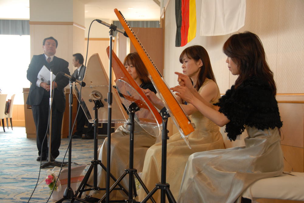 贅沢にもKreisさんによるヘルマンハープの演奏を聴きながら食事を楽しみ、恒例の近藤会員によるトリビア披露もありました。最後に「ローレライ」をヘルマンハープにあわせて参加者全員で合唱し、西原副会長の閉会の辞によりお開きとなりました。