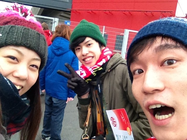 また、香川大学工学部に所属しており、現在ボンでインターンシップをされている清家さん、フランスの協定大学に留学されている濱本さんと一緒に、11月30日に行われたマインツ対ドルトムントの試合を観戦してきました。スタジアムでのサッカー観戦は初めてだったのですが、チャンスや得点時の盛り上がり、熱狂的なファンたちの寒さも吹き飛ぶような応援に圧倒されてしまいました。また、この日フル出場の岡崎慎司選手も見ることができ、とてもいい思い出となりました。