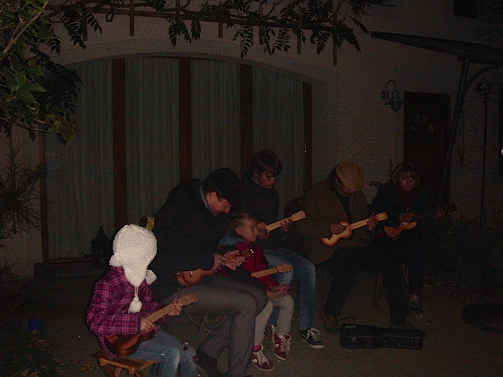 10月3日はドイツ統一記念日です。この日はドレスデン在住のウクレレ奏者の友人宅で昨年同様パーティーがありました。夜は気温が下がり空気が冷たかったけれど、火を焚いてキャンプファイヤーのようでした。ウクレレの生徒さんたちにアコーディオン奏者も加わり、食べて飲んで歌って踊ってとても賑やかなパーティーになりました。