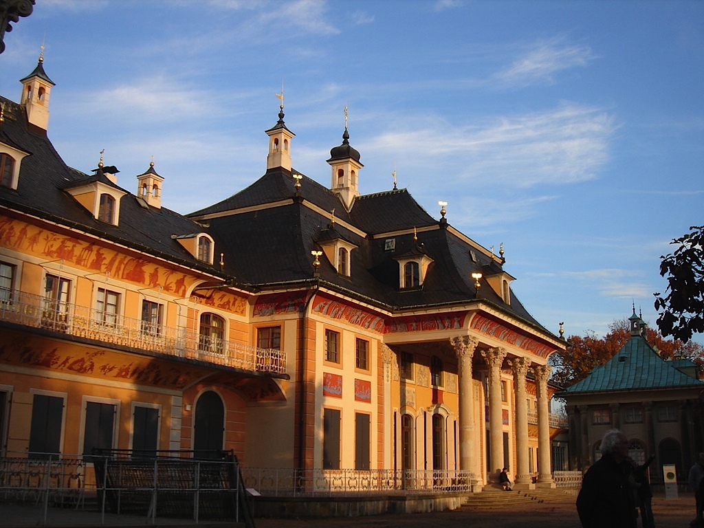 それからドレスデン郊外のピルニッツ城に行きました。こちらは陽を浴びて輝くお城とバロック庭園がとても美しいのですが、今回は庭園は工事中で残念でした。季節になると椿展なども開催され、日本の椿もたくさん展示されます。