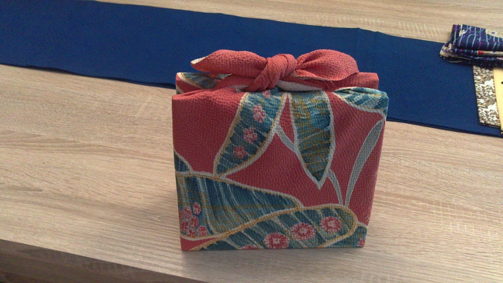 そして10月はドレスデンに住む友人たちと風呂敷ワークショップに参加してきました。一枚の風呂敷で、ワイン瓶、本、箱などいろいろな包み方を習いました。また大きな風呂敷や小さな風呂敷を使って、リンゴなどの果物を包んだり、手提げカバンにしたり、様々な使い方を教えていただきました。日本の風呂敷がこんなに魅力的なものだと改めて知ることができました。