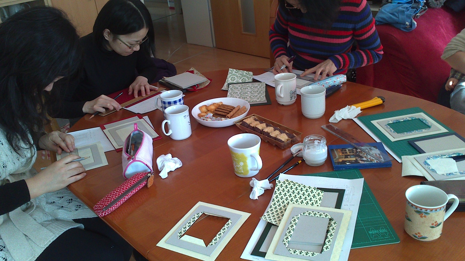 DSC_08222月は仲のよいメンバーで集まり、カルトナージュを始めました。教えていただきながら、まずは基本とも言える写真立てを作りました。慣れない作業で初めは厚紙を切るだけでも大変に感じましたが、自分の好きな柄紙を選んで自分だけの写真立てを作るのは本当に楽しかったです。