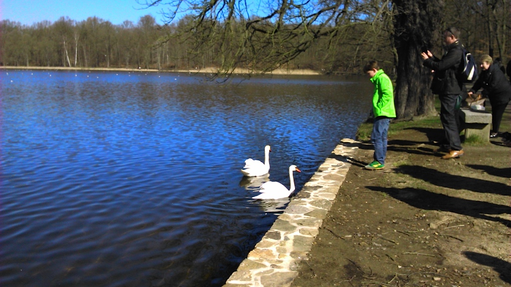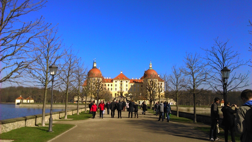 今年の行き先はモーリツブルク城です。こちらがお城の正面側です。前日まで雪が降ったり、突然ヒョウが降ったりしていましたが、幸いこの日は快晴でした。しかし、最高気温は3度と春といえども寒さの厳しい日でした。散策はお城の中ではなく、お城周辺の湖をぐるりと一周しました。ゆっくり景色を楽しみながら、休憩を取りながらで2時間かけて回りました。