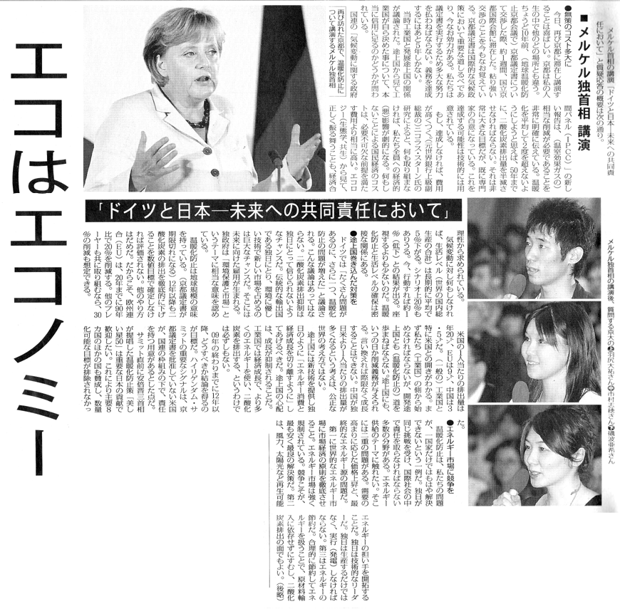 internationalen Austausch beim I-Pal Kagawa) erklärt und wir haben über das Umweltbewußtsein der Japanern diskutiert. Die Deutschen halten das Problem nicht als reine Regierungsaufgabe, sondern als ein persönliches Anliegen. Durch Umwelterziehung z.B. bemüht sich Deutschland als ein im Umweltschutz führendes Industrieland das Problem der Bevölkerung klar zu machen und sie zur eigenen Mithilfe im Umweltschutz aufzufordern.